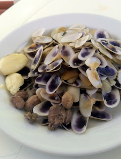 as conquilhas como se fossem tremoços, umas atrás das outras, molhando no fim o